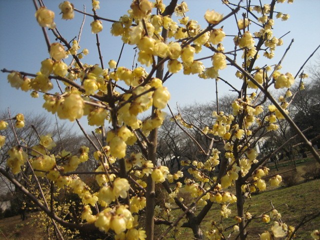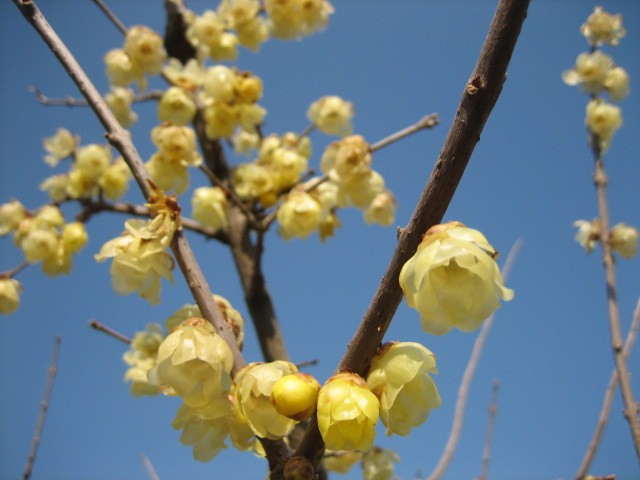 スイミングスクールでOさんから「蝋梅」が全生園で今が身頃らしいと聞いたので | 見に行ってきた。 黄色といってもクリーム色で2cm位の小さな花なので目立たない。 桜並木通りから 大分奥に咲いていたので「あれかな〜?」と自転車を降りて 近づいていくと、甘い匂いがしてきた。可愛い花が 今が満開で咲いていた。 中国原産で 花が蝋細工(ろうざいく)に似ているから「蝋梅」という説があるらしい。 透明感のある花びら、優しい色と香りで恥ずかしげ(笑)に下向きに咲いている。 真冬の厳寒の中で咲く花なので 芯は強い花なんだね。 大きな写真のスライドショーは ここ 全生園では、もう少しすると梅が咲きだす。 今年は暖かい冬なので例年より早く咲くでしょう。そのうち桜も。。。 春よこい、は〜やく来い。年齢を重ねる毎に 寒さが苦手になってくる。待ち遠しいな〜 |