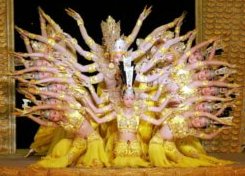 きのうの夜 日本テレビ「極上の月夜」を見た。 中国の聴覚障害者21人が 神秘的な音楽に合わせて 踊る千手観音。 厳しい練習のたまものだ。 耳が聞こえないという ハンディキャップを背負った 21人のダンサーの息の 合った一糸乱れぬ動きに 驚きと感動で釘づけになった。 照明によって黄金の衣装の色が 何種類にも変わる。 ため息が出る程 きれい〜♪ その素晴らしい演技の動画のページはここ 北京オリンピックの開会式への出演も決まったという障害者芸術団。 「誰の人生にも足りないものは必ずあります。でも、努力と楽しむ心を持って、人生の足りない 部分に立ち向かう事、それが大切だと思います」とプリマドンナのタイ・リフォンさんは言う。 そして自ら楽しむ事で 初めて人々を楽しませる事が出来るのだとも。。。 何故か見ていて涙が出てくる。毎日14時間の辛い練習をこなしての演技。 タイ・リフォンさんの引退により 先頭に立つ千手観音の顔になったウェイ・ユィチェちゃんの 慈悲に満ちた表情と 28本のしなやかな手の踊りは、ほんものの観音さまのよう。。 中国障害者芸術団とは? 中国障害者連合会という、国家機関に属する1987年に作られた芸術団体。 中国各地6000万人の障害者の中から厳選された身体の不自由なアーティストが、 生命への美しい憧れや堅忍の意志を表現するため、欧米を中心に公演を行なっていて 2004年アテネ・パラリンピックの閉会式にも出演。 千手観音(千手千眼観世音菩薩)の千の手と千の眼は、慈悲の広大さと、 救う手段の豊富さを表していると云わている。 |